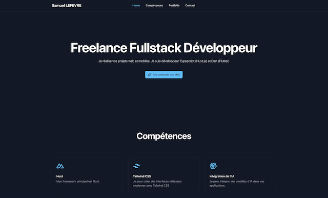 Je réalise vos projets web et mobiles. Je suis développeur Typescript (Nuxt.js) et Dart (Flutter)